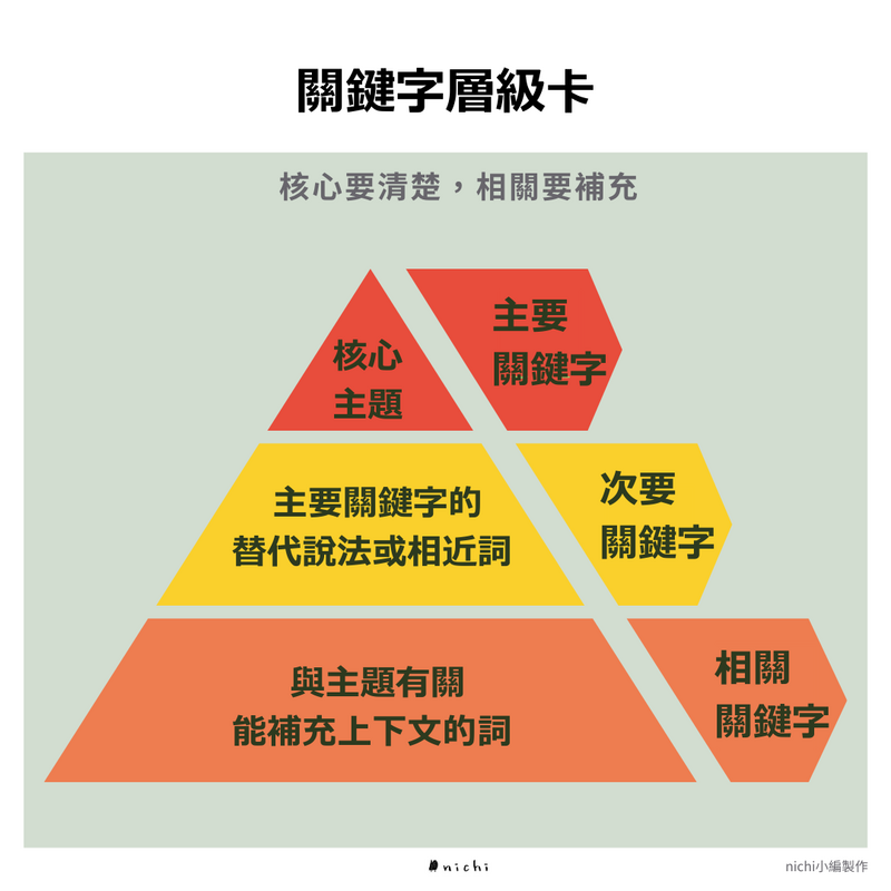要有主要關鍵字,搭配次要關鍵字與相關關鍵字: